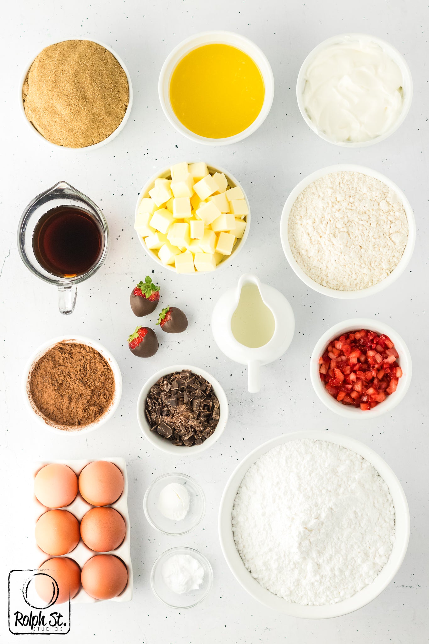 Main ingredients: brown sugar, chocolate, cocoa powder, sour cream, butter, coffee, strawberries