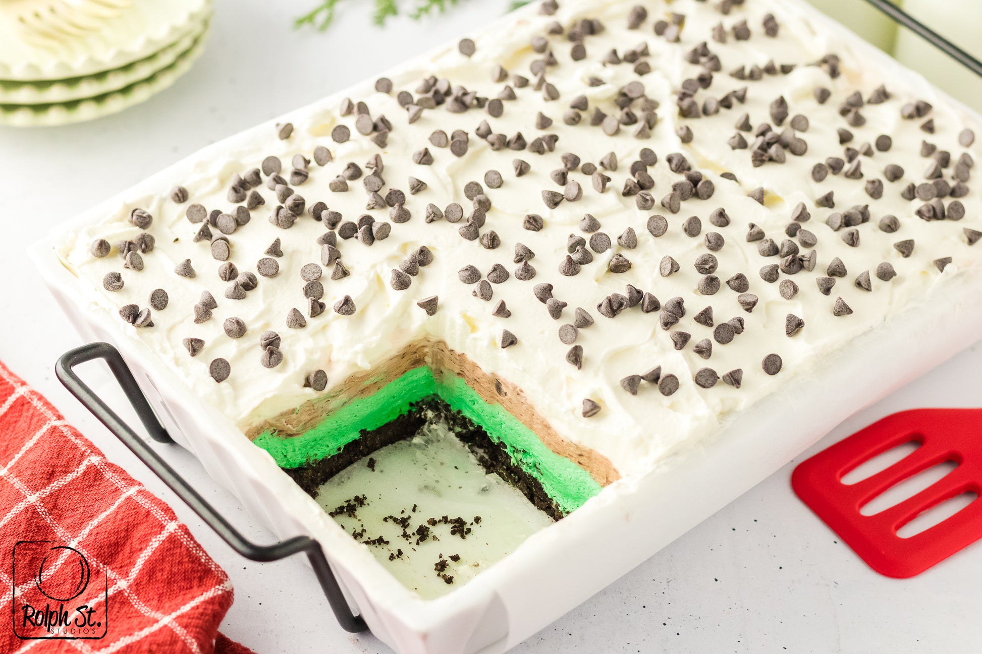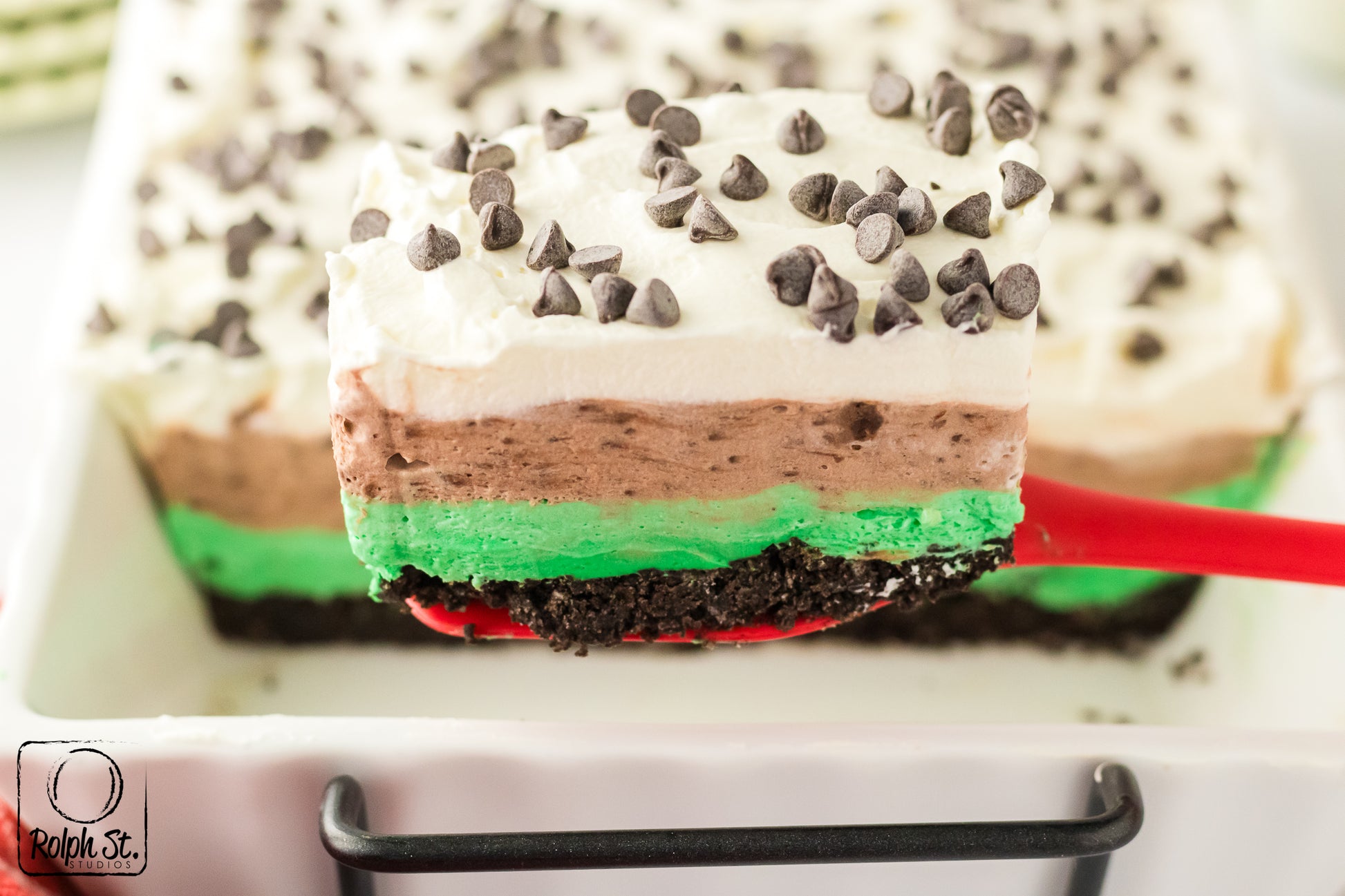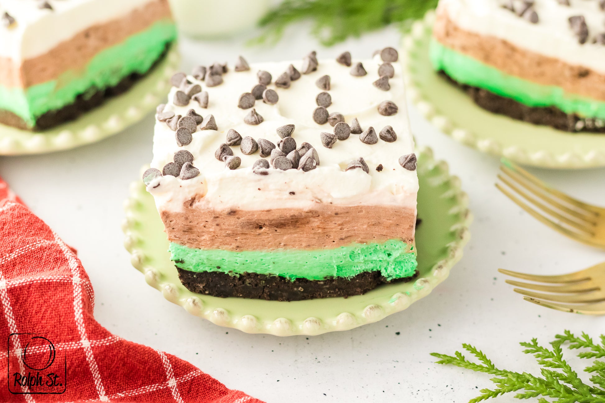 Chocolate Mint Lush is a gorgeous, no bake dessert that perfectly combines all of your favourite Christmas flavours in one sliceable, festive treat. The base is crushed Oreo cookies. On top of that sits a creamy mint cheesecake that has been tinted green for a holiday hue. Next comes a smooth, chocolate pudding layer that adds a rich contrast to the cool mint. Then it is topped with a thick layer of whipped topping and sprinkles of mini chocolate chips. This is a crowd-pleaser during any Christmas get-together or potluck that is as visually stunning as it is delicious.