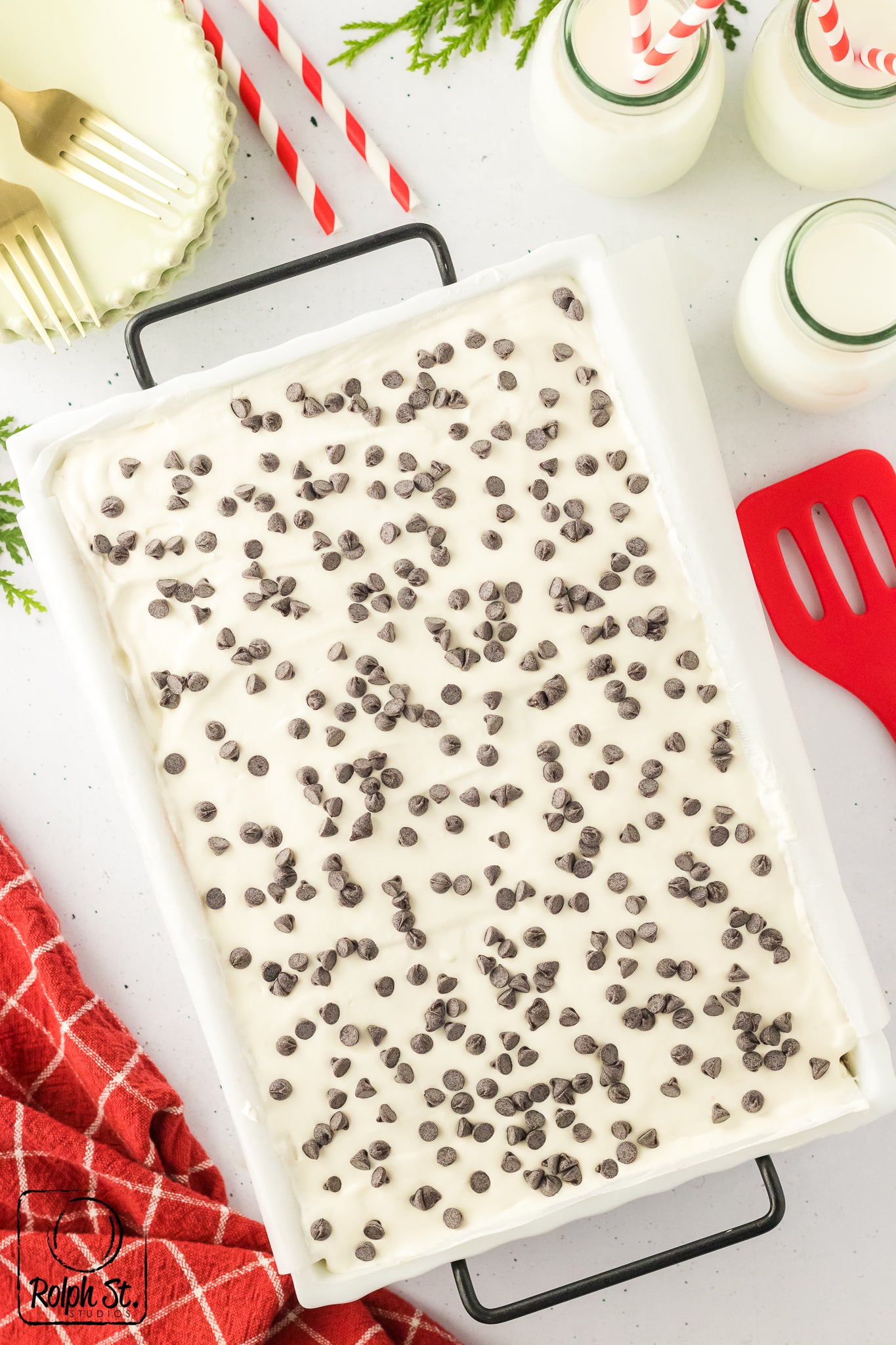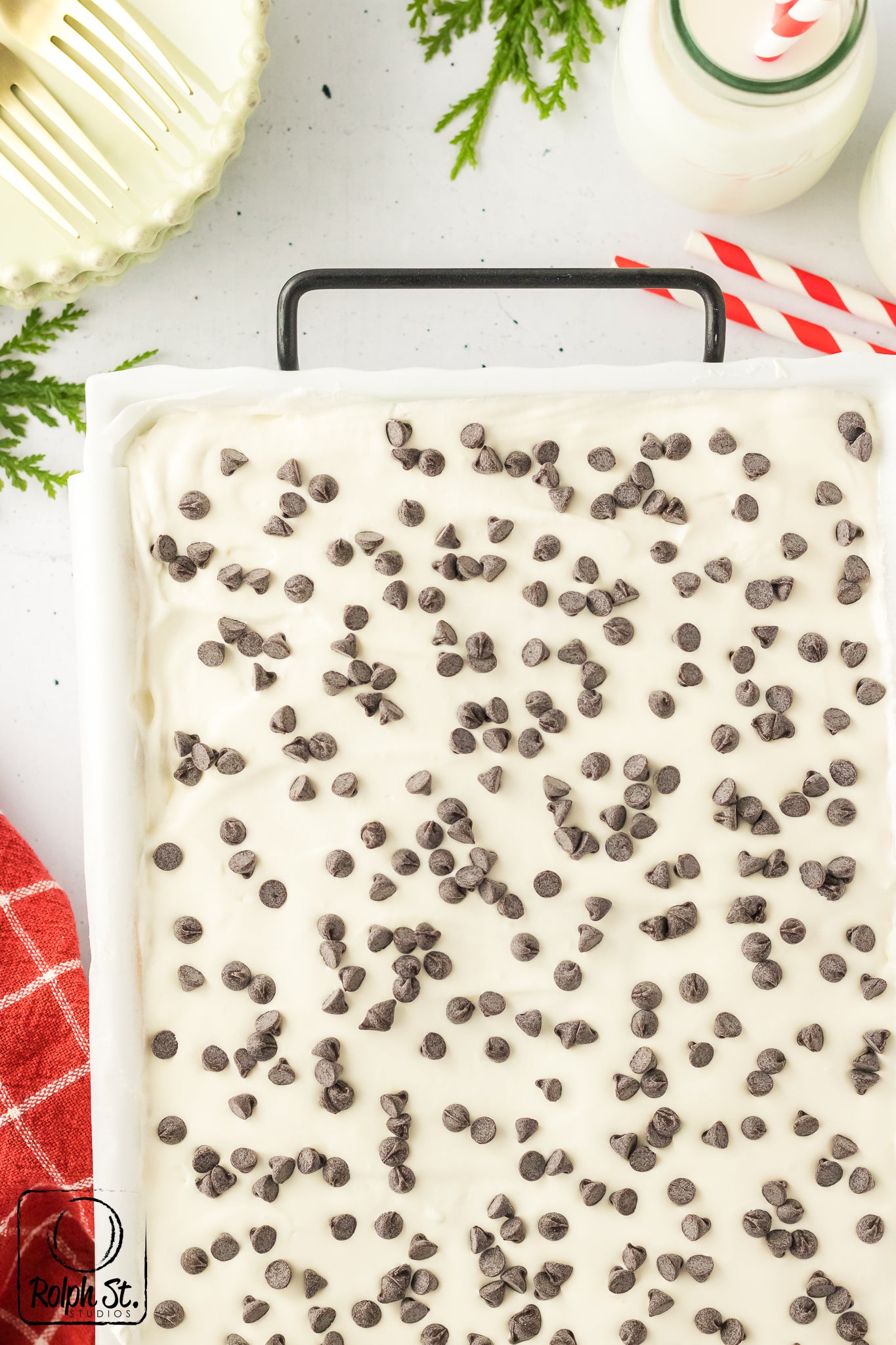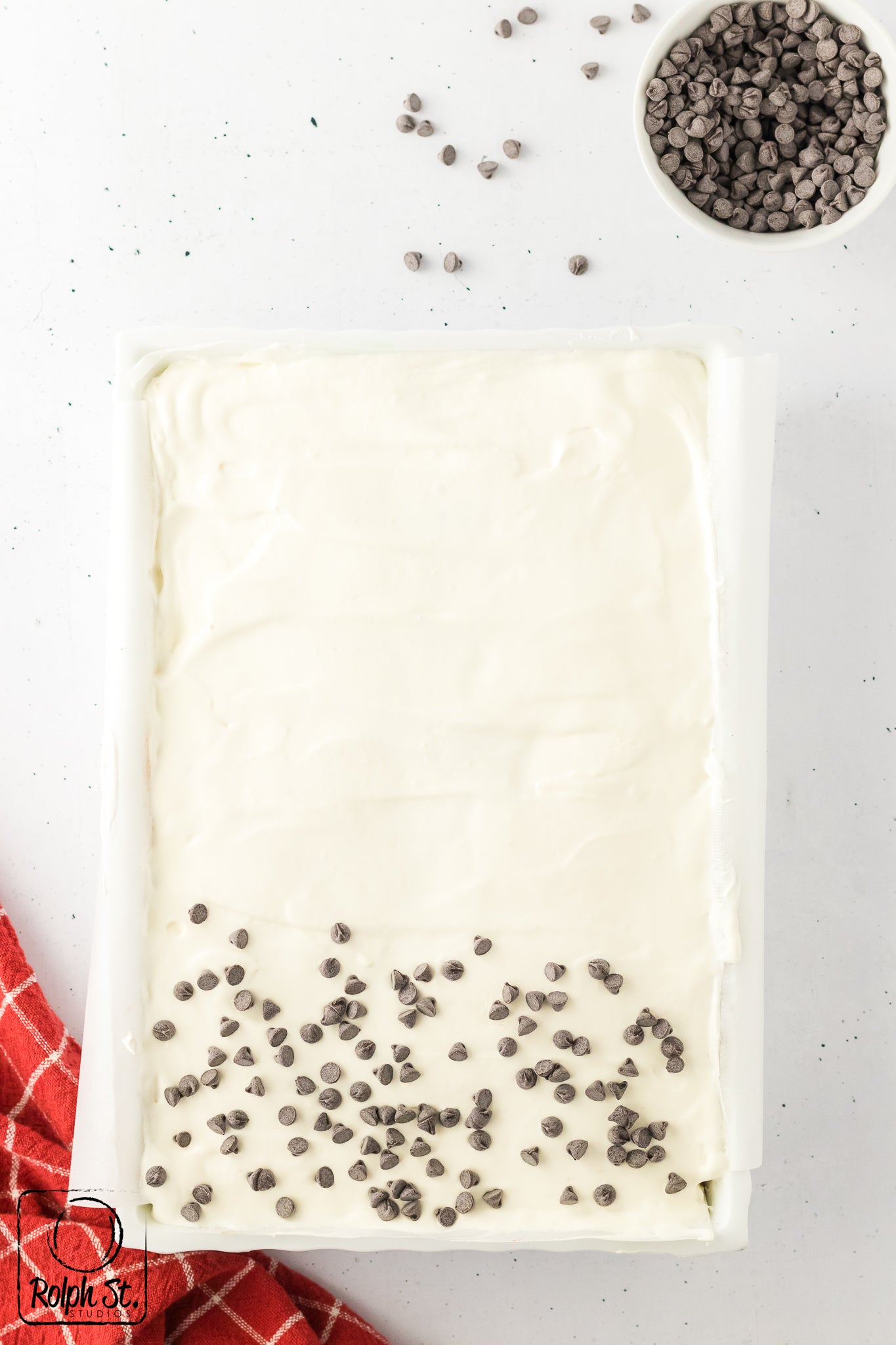 Chocolate Mint Lush is a gorgeous, no bake dessert that perfectly combines all of your favourite Christmas flavours in one sliceable, festive treat. The base is crushed Oreo cookies. On top of that sits a creamy mint cheesecake that has been tinted green for a holiday hue. Next comes a smooth, chocolate pudding layer that adds a rich contrast to the cool mint. Then it is topped with a thick layer of whipped topping and sprinkles of mini chocolate chips. This is a crowd-pleaser during any Christmas get-together or potluck that is as visually stunning as it is delicious.