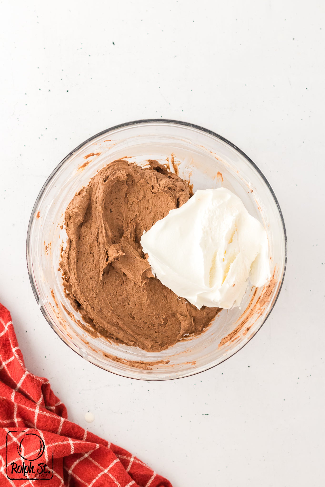 Main ingredients: oreo cookies, cream cheese, chocolate pudding mix, heavy cream, whipped topping
