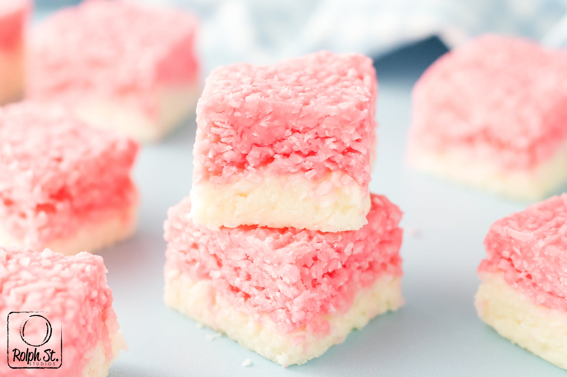Coconut Ice is a nostalgic, no bake treat that’s as delightful to look at as it is to eat. This simple recipe is incredibly easy to make with only 5 ingredients and no oven needed. Each square is soft and chewy with a rich sweetness and is bursting with coconut flavour. This is a favourite at a bake sales or holiday parties, mostly for its simplicity and its vibrant appearance.