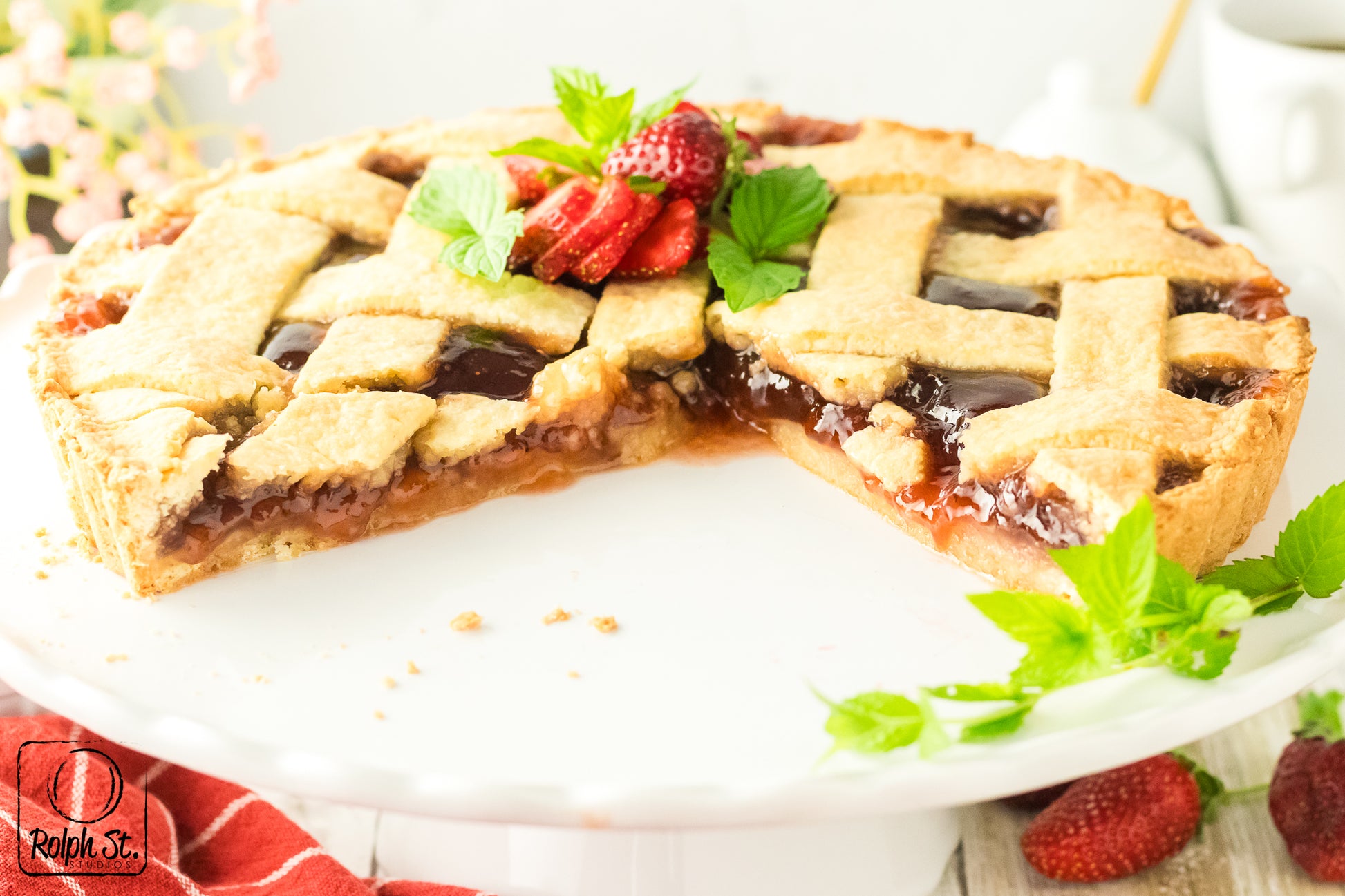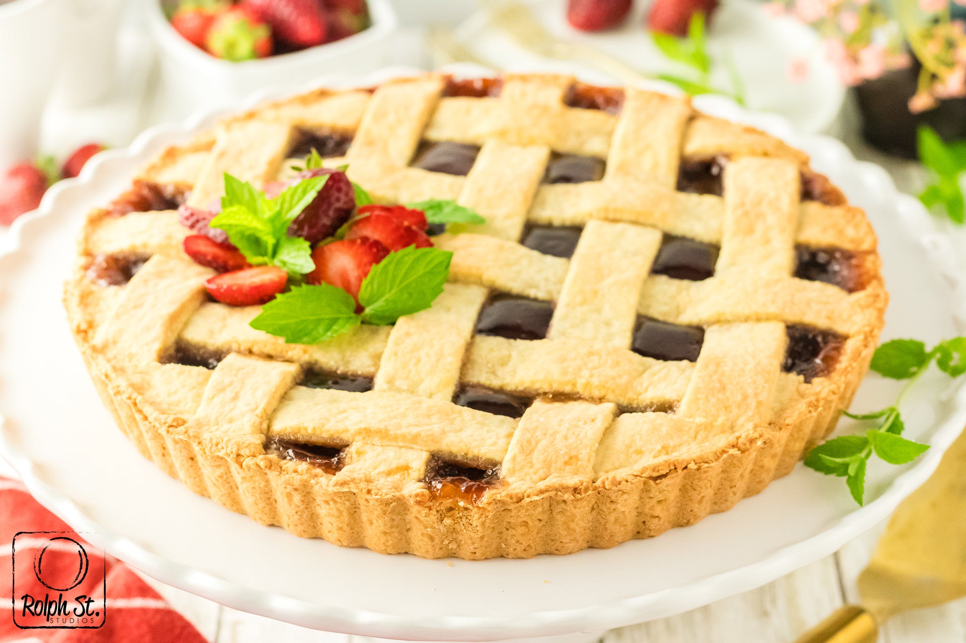 Just 7 ingredients is needed to make this rustic yet timeless Italian recipe. It starts with a base of pasta frolla, a rich pastry similar to shortbread. The dough is rolled, pressed into a tart pan and filled with a sweet layer of strawberry jam. The final touch is its lattice top, allowing the jam to peek through. Once baked, you have a crispy, crunchy cookie-like pie with a burst of strawberry sweetness. This is a simple recipe that is ready to serve in just over an hour.